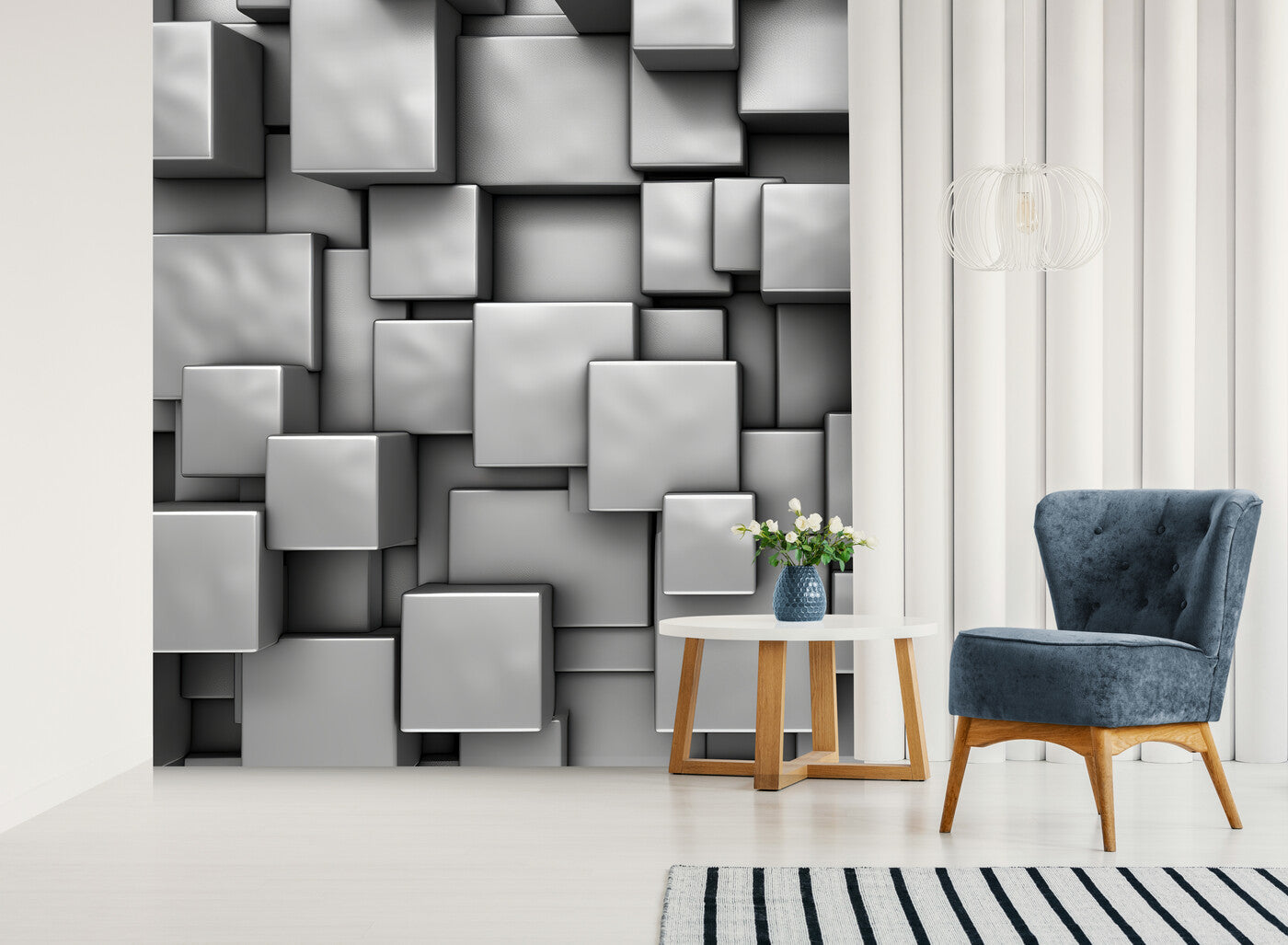 Pour un effet maximal, associez ce papier peint à des meubles aux lignes épurées et aux couleurs neutres, comme des canapés en cuir gris ou des fauteuils en velours anthracite. Ajoutez des touches de verdure avec des plantes d'intérieur pour adoucir l'ambiance et créer un contraste harmonieux. Ce papier peint 3D carrés gris est également parfait pour les espaces de coworking ou les salles de réunion, où il favorisera la concentration et l'inspiration. En intégrant ce motif dans votre décoration, vous transformerez votre espace en un lieu de travail ou de vie à la fois stimulant et apaisant, reflétant la beauté intemporelle du design contemporain.
