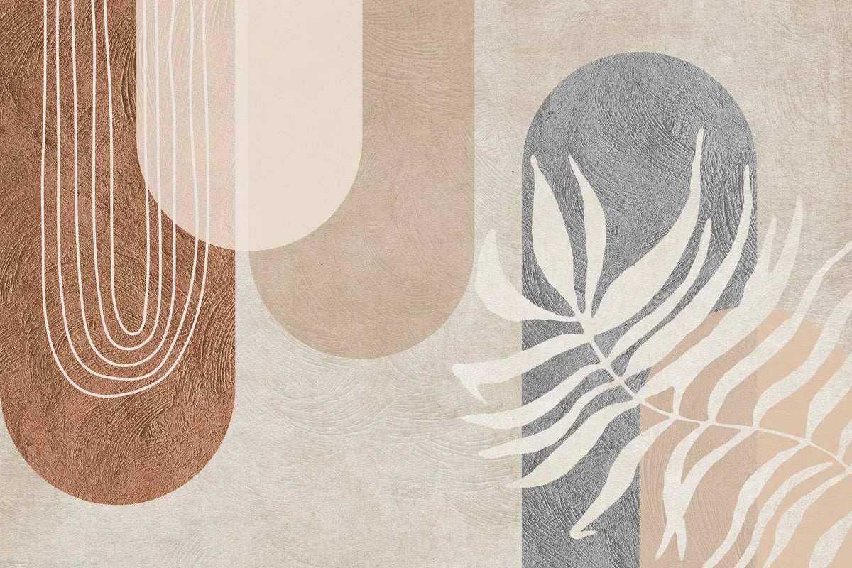 Plongez dans l'univers apaisant et contemporain d'un papier peint abstrait moderne, parfait pour transformer votre espace en un havre de paix et de créativité. Ce motif, aux lignes épurées et aux formes géométriques stylisées, évoque une ambiance bohème et naturelle, idéale pour une chambre à coucher ou un espace de coworking. Les éléments végétaux intégrés apportent une touche de verdure, créant une atmosphère de jungle urbaine sans l'encombrement.