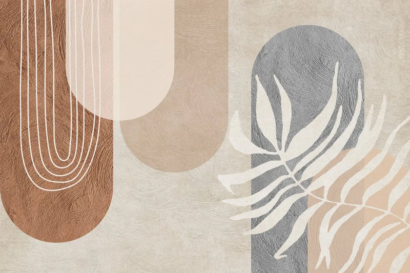 La palette de tons neutres et terreux, composée de beiges, de gris et de verts doux, apporte une chaleur subtile et une sérénité enveloppante, propice à la détente et à la concentration. Pour compléter ce décor, optez pour des meubles en bois clair et des accessoires en matériaux naturels, comme des coussins en lin ou des tapis en jute, afin de renforcer l'harmonie et l'équilibre de votre espace. Ce papier peint abstrait moderne est la clé pour un intérieur minimaliste et contemporain, où chaque détail raconte une histoire de tranquillité et d'élégance.