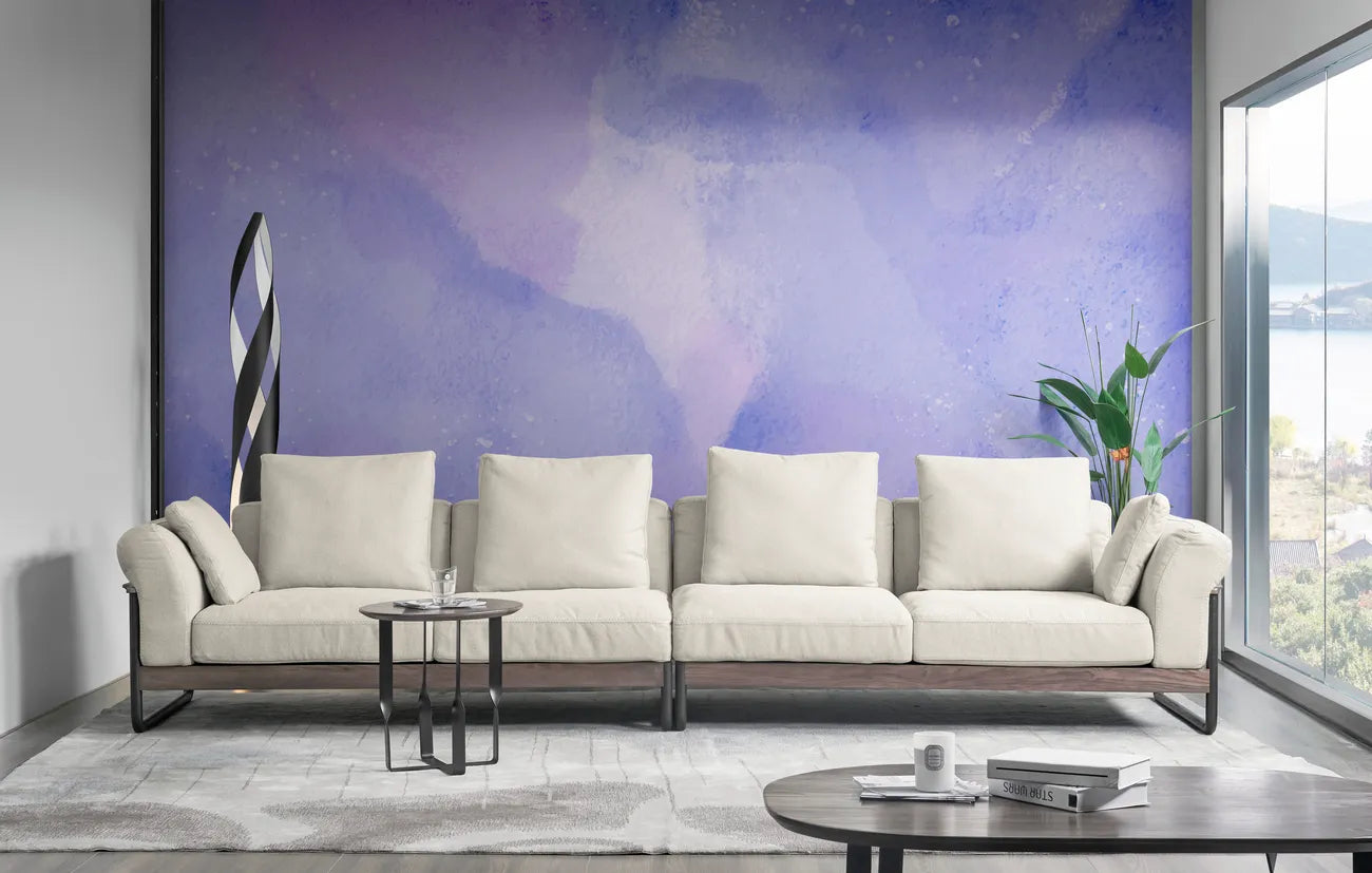 Plongez dans l'univers onirique du papier peint aquarelle violette, un chef-d'œuvre qui transforme vos murs en toiles vivantes. Ce papier peint, aux motifs abstraits et vaporeux, évoque un ciel crépusculaire parsemé de nuances bleues et mauves, créant une atmosphère sereine et artistique idéale pour une décoration intérieure apaisante. Inspiré par la délicatesse de l'aquarelle, ce design sublime apporte une touche de douceur et d'élégance, parfait pour les chambres à coucher, où il favorise la relaxation et le repos.