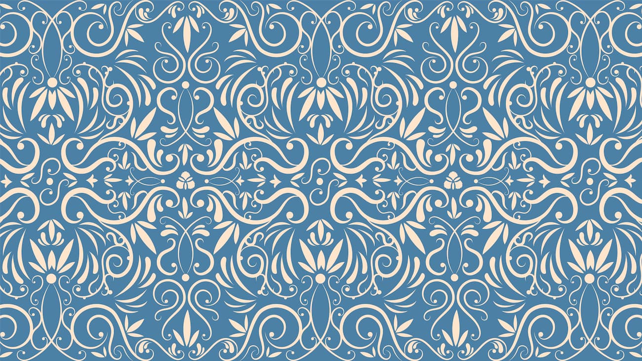 Papier peint baroque motif treillis bleu et blanc