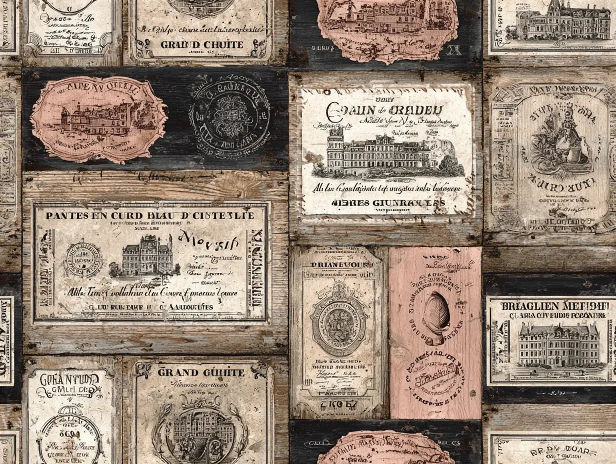 Ce papier peint caisse de vin révèle l'âme des caves ancestrales où reposent les grands crus, transformant vos murs en un voyage sensoriel au cœur des traditions viticoles françaises. Les étiquettes vintage aux teintes patinées d'ocre rosé et de blanc cassé s'épanouissent sur un fond de planches de bois vieilli, évoquant ces caisses en bois qui ont traversé les siècles dans les chais de Bordeaux et de Bourgogne. Chaque motif raconte l'histoire de châteaux prestigieux, de "Grand Cuvée" et de millésimes d'exception, créant une symphonie visuelle où se mêlent typographies classiques, armoiries nobiliaires et architectures de domaines légendaires. Cette décoration murale vintage sublime l'art de vivre à la française, insufflant à votre intérieur cette élégance intemporelle des maisons de négoce et des caves de dégustation. Idéal pour habiller un bar à vin, une cave de dégustation ou un restaurant gastronomique, ce papier peint œnologique métamorphose instantanément l'atmosphère en créant un écrin chaleureux et authentique.