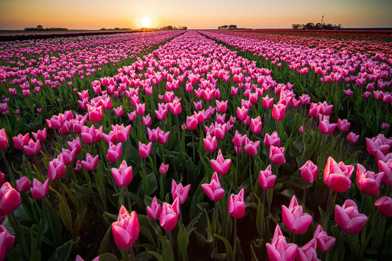 Transformez votre espace avec notre "papier peint champ de fleurs roses", un véritable havre de paix et de couleur. Ce motif floral immersif vous transporte dans un champ de tulipes roses éclatantes, baigné par la douce lueur d'un coucher de soleil orangé, évoquant une atmosphère printanière et romantique. Inspiré des paysages pittoresques des Pays-Bas, ce décor muraux réaliste et poétique apporte une touche de nature et de sérénité à votre intérieur. Idéal pour une chambre à coucher, ce papier peint crée une ambiance douce et apaisante, parfaite pour se détendre et se ressourcer après une longue journée.