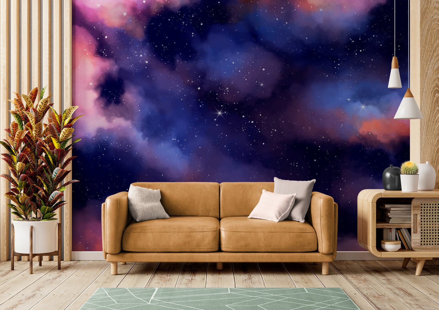 Dans un café ou un espace de coworking, ce papier peint apportera une touche de magie et de tranquillité, invitant à la détente et à la réflexion. Pour une salle de réunion, il créera une ambiance inspirante, stimulant la créativité et favorisant les échanges constructifs. Associez-le à des éléments naturels, comme des plantes vertes, pour équilibrer la pièce et apporter une touche de fraîcheur. Ce papier peint ciel étoilé bleu et violet est parfait pour ceux qui cherchent à intégrer des motifs abstraits et des éléments de décoration murale uniques, apportant une touche de rêve et d'évasion dans votre intérieur.