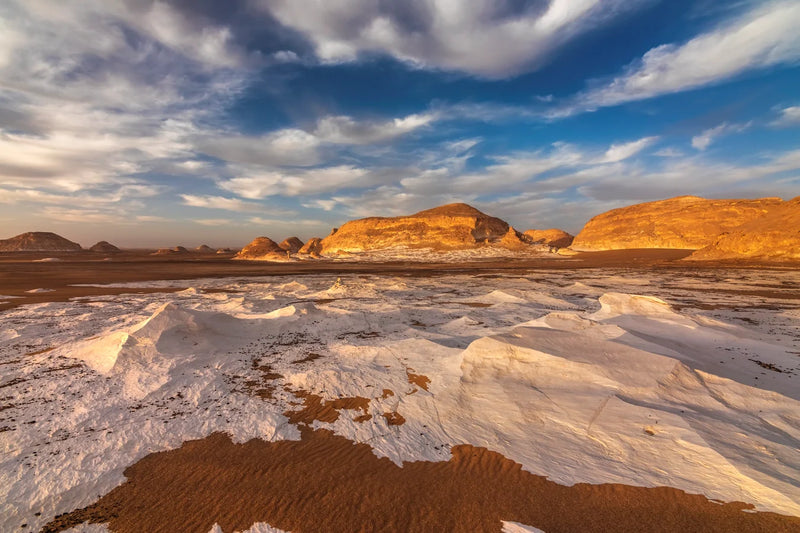 Plongez dans l'évasion avec notre papier peint désert blanc égyptien, une œuvre d'art murale qui transfigurera vos espaces intérieurs en un havre de paix et de majesté. Ce décor panoramique, inspiré par le réalisme photographique, capture avec une précision saisissante les formations rocheuses dorées et les dunes blanches sculptées par le vent, sous un ciel azur nuageux. Idéal pour les chambres à coucher, ce motif apportera une ambiance sereine et grandiose, transformant votre pièce en un sanctuaire de tranquillité. Les teintes chaudes et les textures naturelles du désert égyptien créeront une atmosphère apaisante, propice à la relaxation et à la méditation.