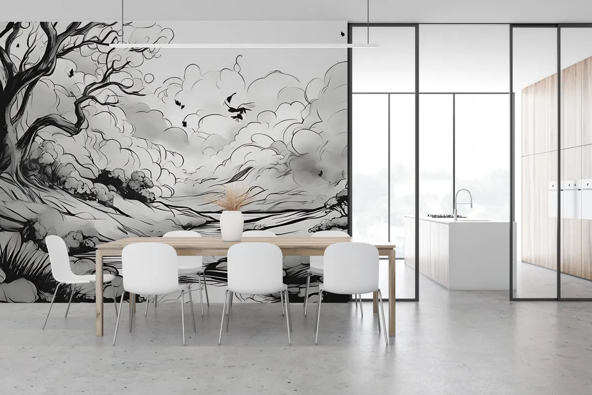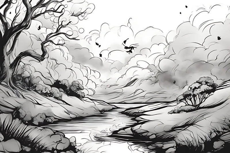 Le papier peint dessin cours d'eau immerge les espaces intérieurs dans une sérénité infinie, évoquant les paisibles rivières japonaises. Ce motif, en noir et blanc, se pare de formes fluides et de nuages vaporeux, créant une ambiance zen et contemplative, idéale pour une décoration intérieure minimaliste et élégante. Inspiré du style artistique japonais, il apporte une touche de tranquillité et de sophistication, transformant chaque pièce en un havre de paix.