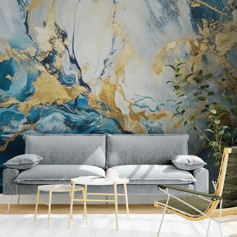 Le Papier Peint Marbre Bleu Doré pour une élégance luxueuse