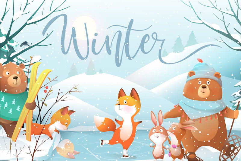 Papier peint enfant forêt enneigée et animaux
