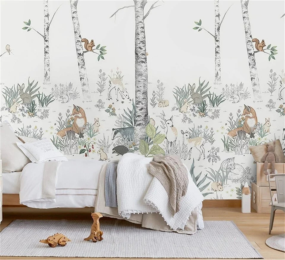 Ce décor intemporel apporte une touche de nature à la chambre, transformant l’espace en une jungle intérieure où chaque coin devient un territoire d’aventure. Pour compléter cette atmosphère, optez pour des meubles en bois clair et des textiles aux motifs naturels, comme des coussins en lin ou des rideaux en coton. Ajoutez des éléments décoratifs tels que des peluches en forme d’animaux forestiers ou des étagères en forme de branches d’arbres pour renforcer l’ambiance naturelle. Ce papier peint enfant forêt noir et blanc, parfait pour une chambre d’enfant, crée un environnement propice à la détente et à l’éveil des sens, tout en offrant une décoration élégante et durable.