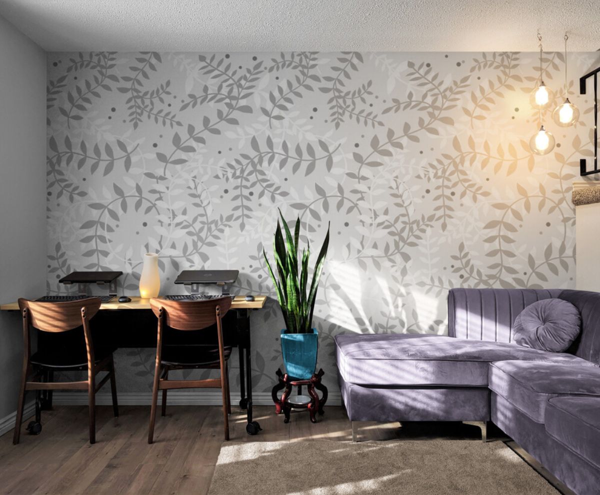 Le Papier Peint Feuillage Gris-Blanc pour une ambiance zen naturelle