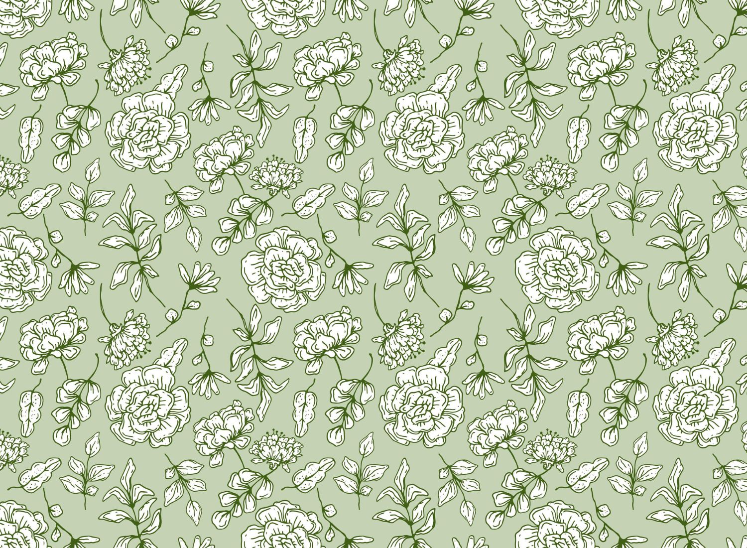 Papier peint fleuri vintage vert
