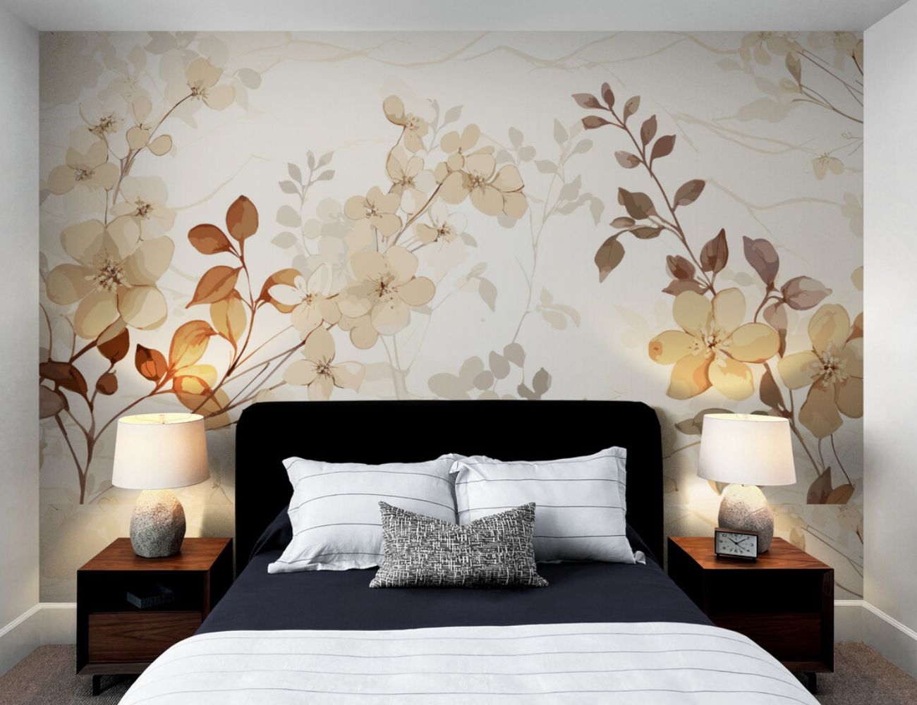 Plongez dans l'harmonie d'un intérieur où le temps semble suspendu grâce au papier peint fleurs beige, une véritable ode à la nature et à la tranquillité. Ce motif floral délicat, inspiré par l'art japonais, enveloppe les murs d'une atmosphère douce et apaisante, idéale pour transformer une chambre en sanctuaire de sérénité. Les fleurs et feuilles stylisées, parées de nuances neutres de beige, brun et crème, évoquent une ambiance aquarelle, apaisante et élégante. Parfait pour un commerce souhaitant offrir à ses clients une escapade zen, ou pour un café où chaque gorgée de café se savoure dans un cadre apaisant.