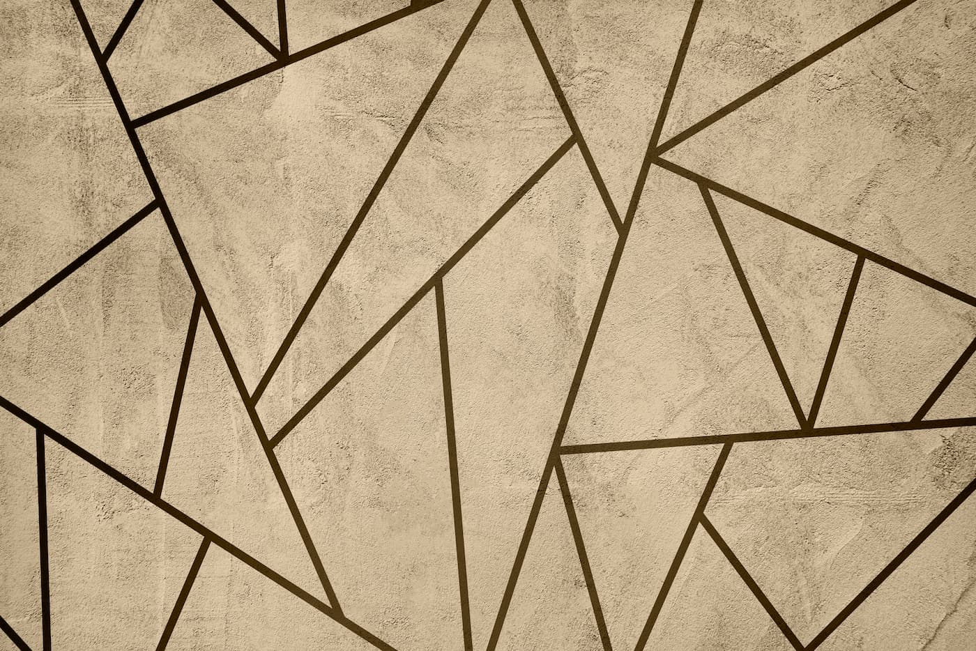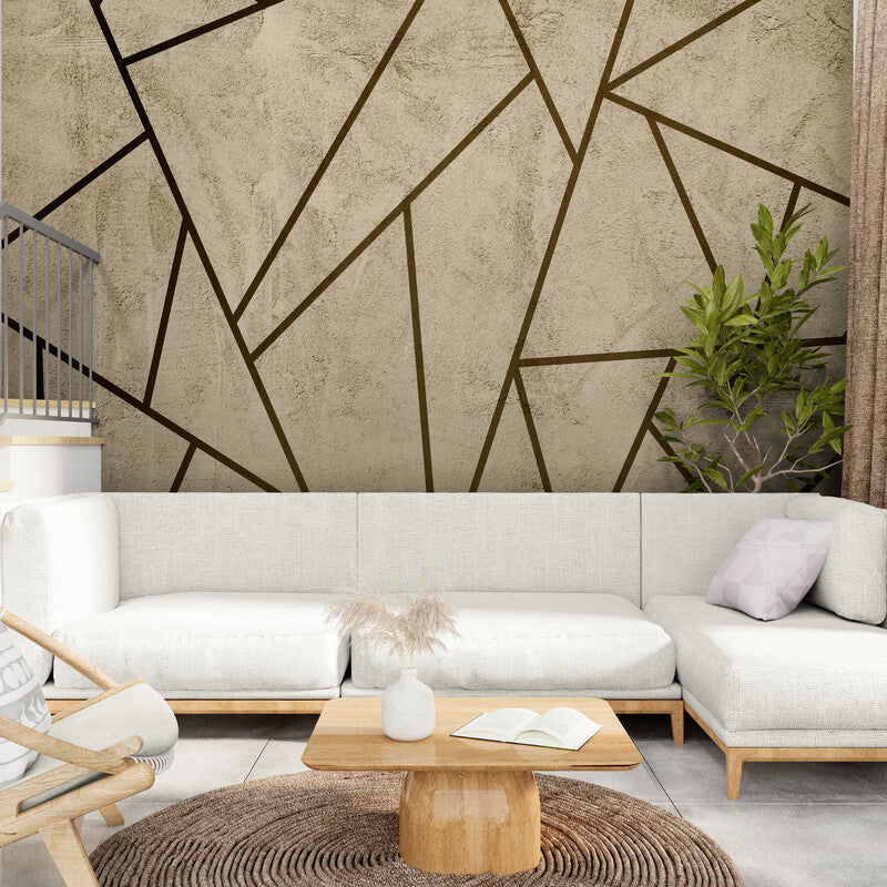 Le papier peint géométrique lignes abstraites transforme l'espace en une oasis de modernité et d'élégance. Ce motif Art Déco, composé de lignes sombres et de triangles précis, structure un fond beige texturé, apportant une profondeur et une sophistication inégalées. Idéal pour les chambres à coucher, ce papier peint crée une ambiance introspective et apaisante, parfaite pour se ressourcer après une longue journée.