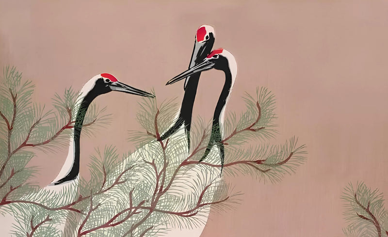 Plongez dans l'harmonie et la sérénité avec notre papier peint grue japonaise, un motif inspiré de l'art nippon qui transforme votre espace en un havre de paix. Ce décor mural élégant met en scène des grues stylisées aux têtes rouges et noires, perchées sur des branches de pin, créant une ambiance paisible et raffinée. Les couleurs douces et le style graphique épuré apportent une touche de nature et de tranquillité, idéales pour une chambre à coucher ou un salon.