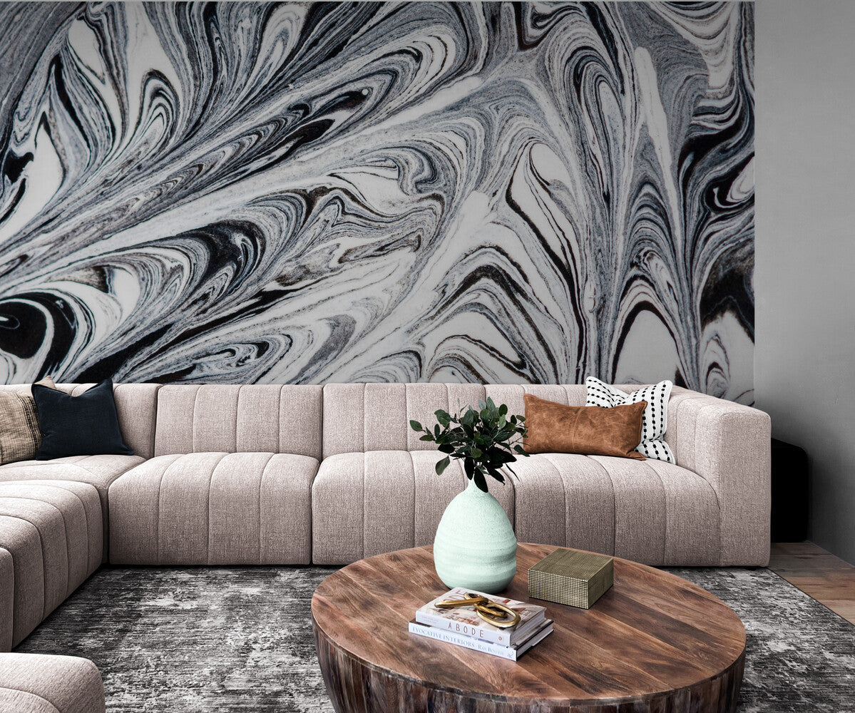 Le papier peint marbre blanc et noir foncé transcende les frontières du conventionnel, offrant une toile vivante où les volutes et tourbillons s'entrelacent en une danse harmonieuse, évoquant la beauté intemporelle du marbre. Ce motif abstrait et dynamique, inspiré par l'expressionnisme abstrait, crée une ambiance élégante et contemporaine, idéale pour sublimer une chambre à coucher, un café branché ou un espace de coworking. Les tons de noir, gris et blanc apportent une profondeur et une sophistication qui captivent le regard, tout en apportant une sensation de sérénité et de modernité. Dans une chambre, ce papier peint peut transformer l'espace en un sanctuaire de tranquillité, où les lignes fluides et les jeux de lumière créent une atmosphère apaisante.