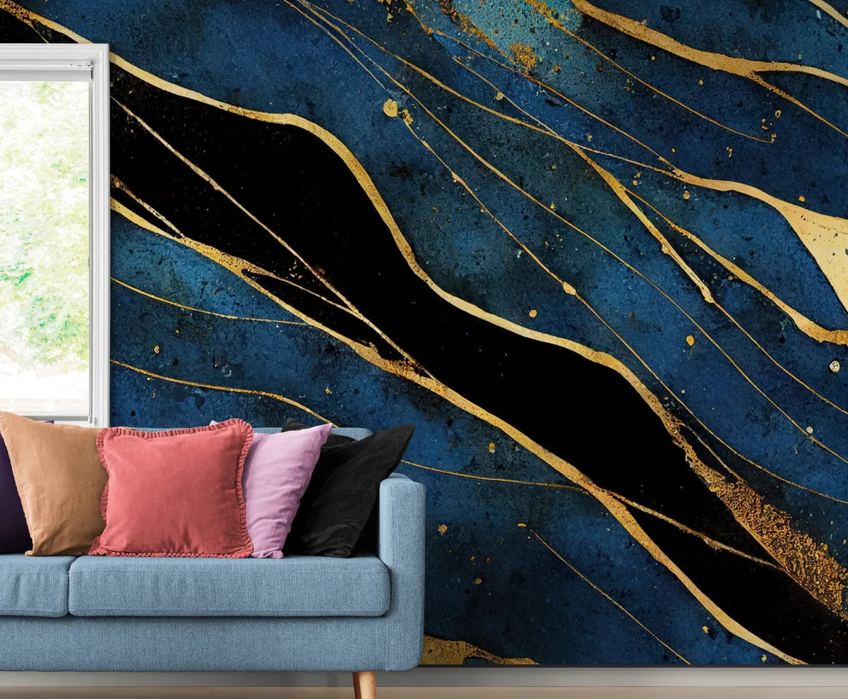 Le Papier Peint Marbré Bleu Or pour une élégance contemporaine
