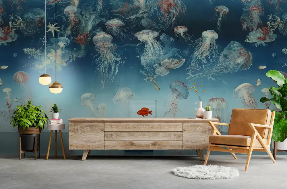Le Papier Peint Méduse et Poisson pour une élégance audacieuse