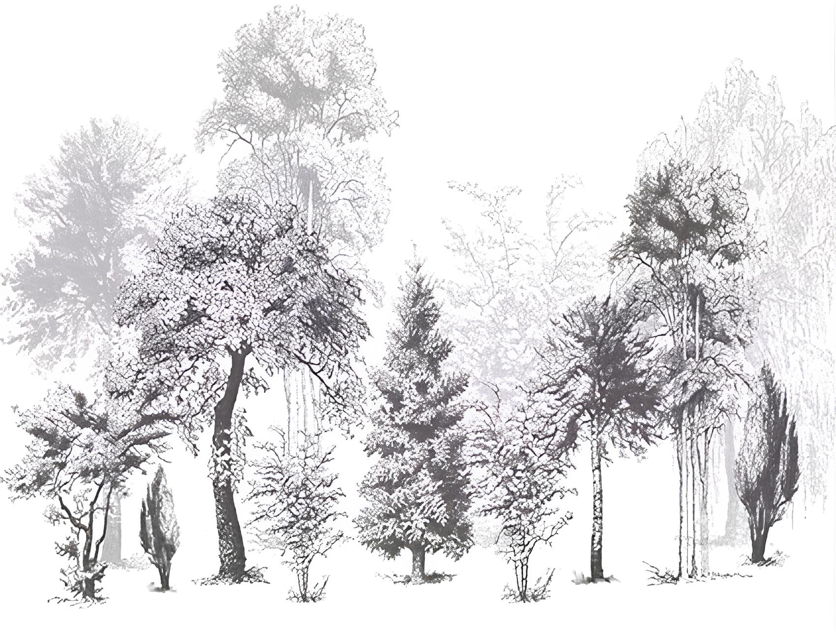 Papier peint noir et blanc arbres design