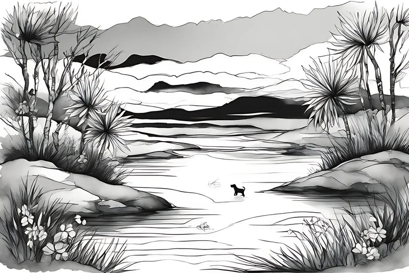 Découvrez le papier peint noir et blanc chien dans l'eau, une véritable invitation à la sérénité et à l'évasion. Ce motif, inspiré de l'art japonais, transporte votre intérieur dans un paysage monochrome où les formes stylisées de montagnes, de plantes et d'un petit chien se fondent harmonieusement. Évoquant un haïku visuel, ce décor évoque une ambiance paisible et épurée, idéale pour créer une atmosphère zen et relaxante.