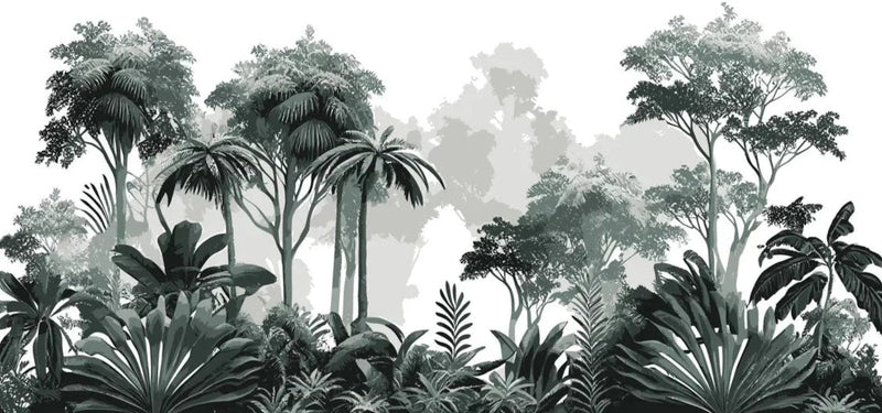 Le papier peint noir et blanc jungle tropicale, véritable œuvre d'art murale, immerge votre espace dans une atmosphère de forêt tropicale luxuriante. Les palmiers et la végétation dense, dessinés dans un dégradé subtil de gris et de noir, créent une ambiance exotique et élégante. Ce motif, inspiré par le style graphique et épuré, apporte une touche de nature sauvage à votre intérieur, tout en conservant une esthétique contemporaine. Idéal pour transformer une chambre en refuge tropical ou un café en oasis urbaine, ce papier peint jungle tropicale en noir et blanc offre une escapade visuelle vers des contrées lointaines.