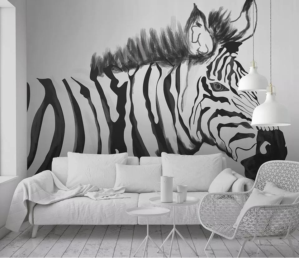Ce design minimaliste et graphique met en valeur la beauté de la nature, tout en ajoutant une dimension artistique et sophistiquée. Idéal pour un commerce ou un café, ce papier peint apportera une atmosphère dynamique et chic, invitant à la détente et à l'inspiration. Pour compléter l'ambiance, optez pour des meubles en bois clair et des accessoires naturels, comme des plantes vertes et des textiles en lin, afin de créer un équilibre harmonieux entre modernité et nature. Ce papier peint noir et blanc zèbre, avec son motif zébré élégant et ses lignes fluides, transformera votre espace en un sanctuaire de style et de tranquillité, où chaque détail raconte une histoire de beauté naturelle et d'artisanat raffiné.