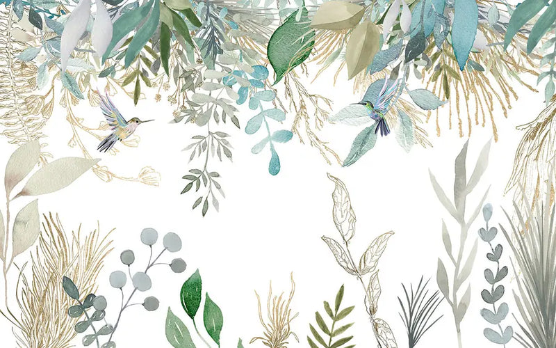 Plongez dans une atmosphère enchantée avec notre papier peint "Oiseaux et feuilles tropicales", un véritable havre de paix pour vos intérieurs. Ce motif aquarelle, aux nuances délicates de verts et de bleus, évoque une jungle luxuriante où les feuilles frémissent sous une douce brise. Les touches dorées, subtilement intégrées, apportent une touche de magie et d'élégance, tandis que les colibris, symboles de liberté et de grâce, ajoutent une dimension poétique. Idéal pour une chambre à coucher, ce papier peint créera une ambiance bohème et romantique, propice à la détente et à la rêverie. Imaginez-vous dans un cocon de verdure, où chaque regard se pose sur des motifs naturels, apaisants et inspirants.