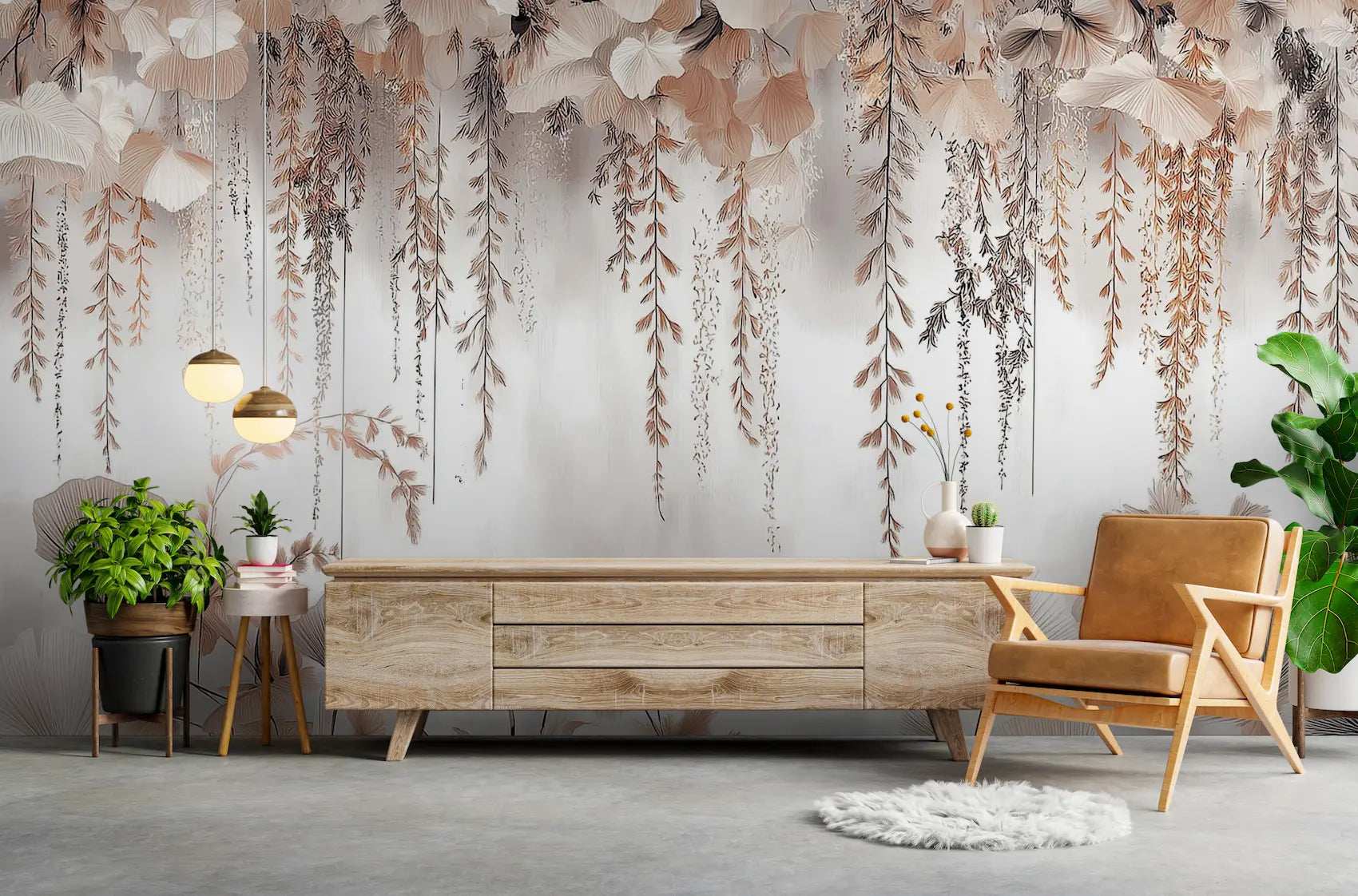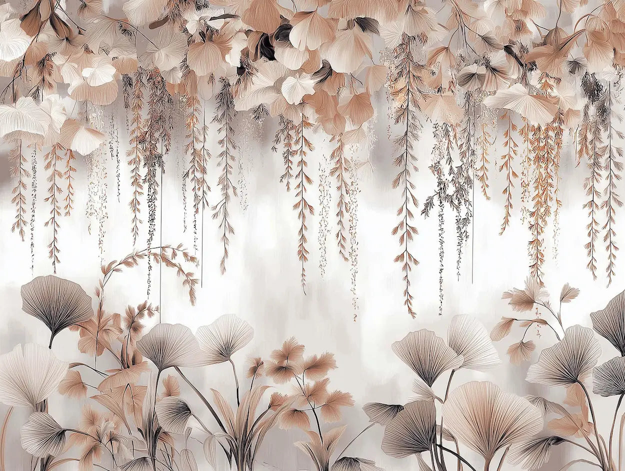 Dans la poésie des jardins suspendus, ce papier peint panoramique glycine révèle une cascade végétale enchanteresse où grappes mauve poudré et palmes émeraude s'entremêlent dans une aquarelle vaporeuse aux tons terre de Sienne et gris perle. Les efflorescences pendantes - glycines vaporeuses, palmiers graciles, fougères aériennes - composent une symphonie tropicale d'une douceur romantique qui transforme vos murs en conservatoire botanique baigné de lumière tamisée. Cette fresque murale panoramique déploie son univers féerique avec la délicatesse d'une peinture impressionniste, créant une ambiance jardin d'hiver sophistiquée parfaite pour un spa urbain, une boutique de cosmétiques naturels ou un restaurant végétal haut de gamme. L'élégance florale de ce revêtement mural décoratif apporte une sérénité organique aux espaces bien-être - salon de beauté, cabinet de naturopathie, coworking créatif - où cette esthétique nature inspire détente et harmonie intérieure.