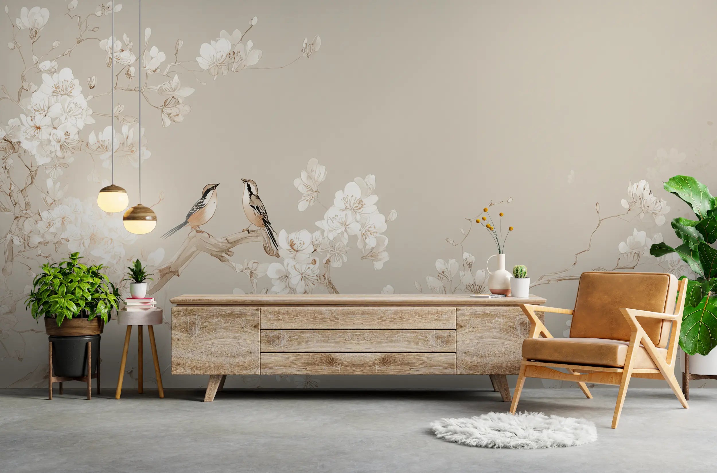 Sur les branches tortueuses de ce papier peint panoramique magnolia, des oiseaux délicats se posent comme des messagers de grâce au milieu d'une floraison immaculée qui transforme vos murs en poème chinois suspendu. Les fleurs de magnolia blanc pur aux étamines dorées s'épanouissent dans un ballet aérien sur fond beige lin, créant une atmosphère contemplative d'une rare sophistication où la nature orientale dialogue avec l'élégance occidentale. Cette fresque murale panoramique déploie ses motifs ornithologiques et botaniques avec une délicatesse d'aquarelle, sublimant une chambre parentale en sanctuaire zen ou métamorphosant un salon en jardin d'hiver perpétuel. L'harmonie chromatique beige et blanc de ce revêtement mural décoratif apporte une sérénité lumineuse aux espaces de bien-être - spa, cabinet de thérapie, boutique de luxe - où cette symphonie florale inspire quiétude et raffinement. L'architecture poétique de ce papier peint panoramique magnolia crée une profondeur visuelle qui agrandit l'espace tout en l'enveloppant d'une douceur minérale propice à la méditation. Dans un coworking créatif, ces branches fleuries stimulent l'inspiration sans distraire, tandis qu'en salle de réunion, elles insufflent une sérénité productive qui favorise la concentration. Harmonisez cette tapisserie avec un mobilier aux matières naturelles - rotin tressé, bois flotté, céramique mate - et des luminaires suspendus en bambou ou métal patiné. Cette décoration murale végétale transforme chaque pièce en refuge contemplatif où l'art chinois traditionnel rencontre le design contemporain, offrant une échappée sensorielle qui révèle la beauté intemporelle de la nature stylisée.