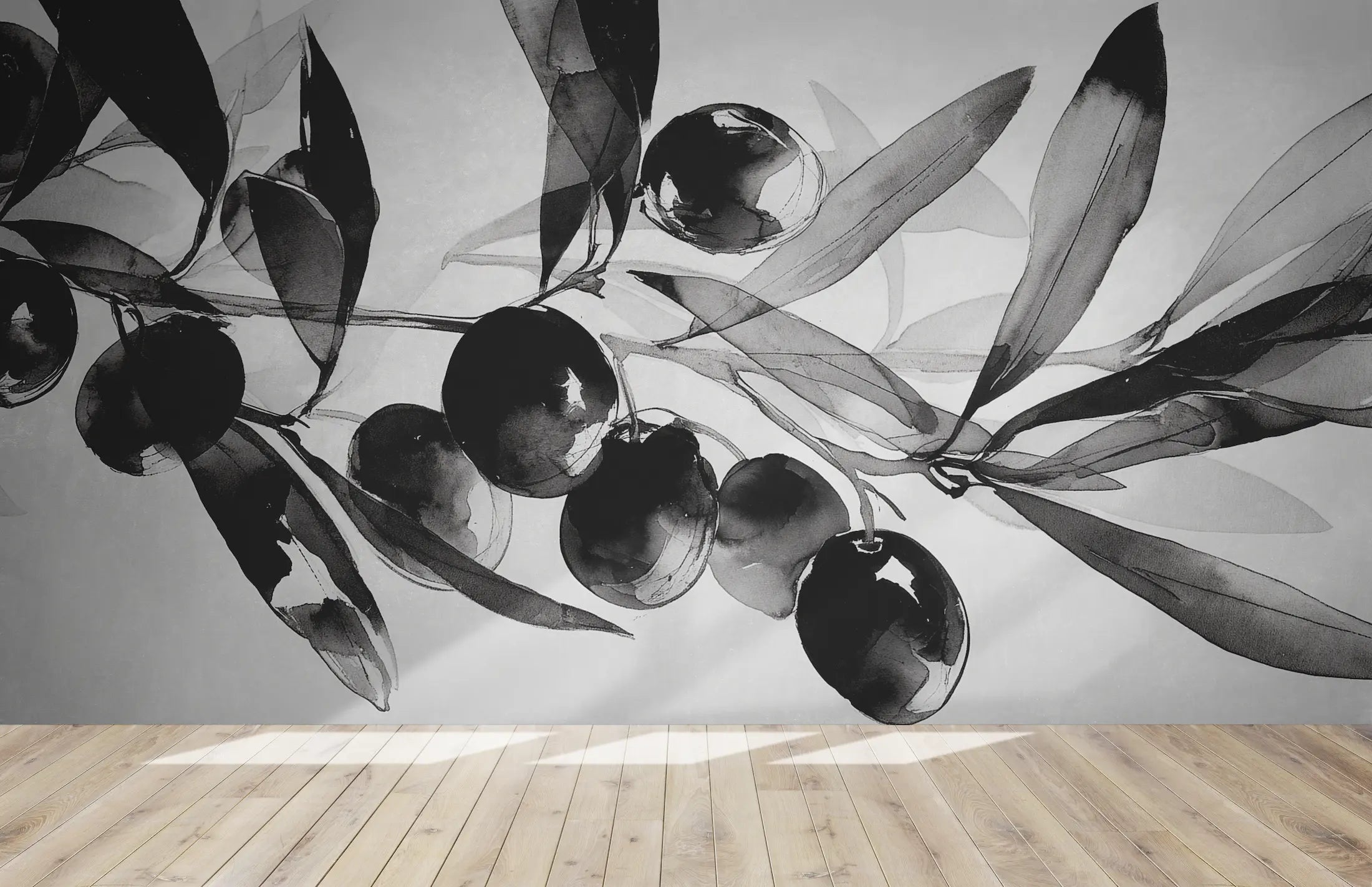 Une ode poétique aux olives dansantes, ce papier peint panoramique en noir et blanc sublime l'essence même de l'olivier méditerranéen. Les traits d'encre délicats esquissent une chorégraphie botanique où les branches s'entrelacent avec grâce, tandis que les feuilles et les fruits se dessinent dans une abstraction sensible. La technique picturale évoque l'art oriental traditionnel, où chaque coup de pinceau raconte une histoire de lumière et d'ombre, créant une atmosphère zen et épurée. Les nuances de gris veloutées se fondent harmonieusement sur le fond immaculé, insufflant une dimension aérienne et contemplative à votre espace. Ce panoramique transformera votre intérieur en un havre de paix méditerranéen contemporain, idéal pour une suite parentale ou un espace de réception élégant. Son style minimaliste et raffiné s'accordera parfaitement avec des matériaux naturels comme le lin ou le bois clair, et des mobiliers aux lignes épurées. Pour sublimer cette fresque murale, privilégiez des assises en velours gris perle et des luminaires en laiton brossé qui captureront la douceur des tons argentés. Cette œuvre murale insuffle une atmosphère apaisante propice à la méditation, parfaite pour un cabinet de bien-être ou un restaurant gastronomique recherchant une élégance intemporelle. Associez-le à des touches de vert olive en accessoires pour une harmonie chromatique parfaite.