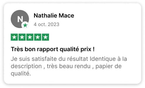 - Exactement les dimensions commandées (+3cm environs sur chaque bord pour le rognage)
