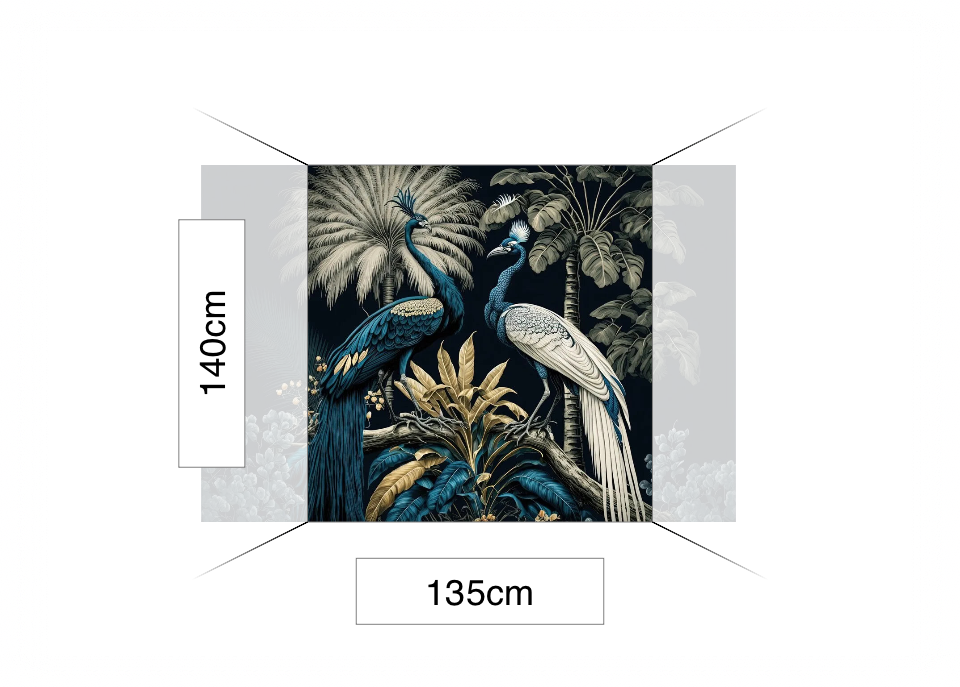 Plongez dans l'élégance intemporelle avec notre "Papier peint paons et arbres", un motif qui transforme toute pièce en un véritable sanctuaire de raffinement et d'exotisme. Ce décor mural, inspiré par l'art déco, présente des paons majestueux aux plumes chatoyantes, se déployant parmi des feuillages tropicaux luxuriants. Les tons de bleu nuit, de blanc et d'or créent une atmosphère sophistiquée, parfaite pour une décoration intérieure raffinée. Idéal pour une chambre à coucher, ce papier peint apporte une touche de jungle urbaine, invitant à la détente et à la méditation.