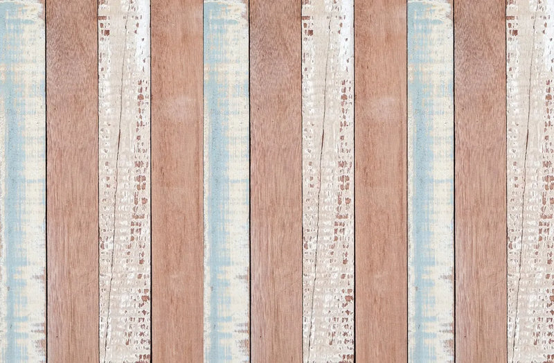 Papier peint planches de bois marron, bleu et blanc