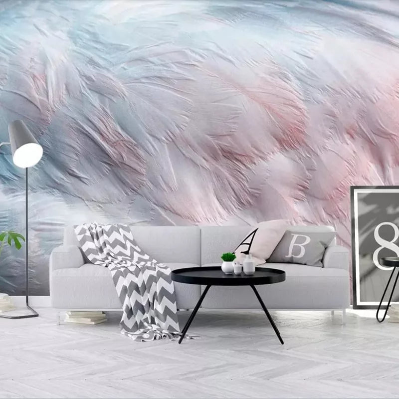 Le papier peint plumes colorées transforme instantanément votre espace en un havre de paix et de sérénité. Ce motif délicat, inspiré des plumes, apporte une touche aérienne et romantique, parfaite pour une chambre à coucher ou un salon. Les formes douces et fluides dans des tons pastel de blanc, rose et bleu créent une ambiance bohème subtile et élégante. Idéal pour une décoration murale qui évoque un style artistique raffiné, ce papier peint pastel peut être associé à des meubles en bois clair pour renforcer l'atmosphère naturelle et apaisante.