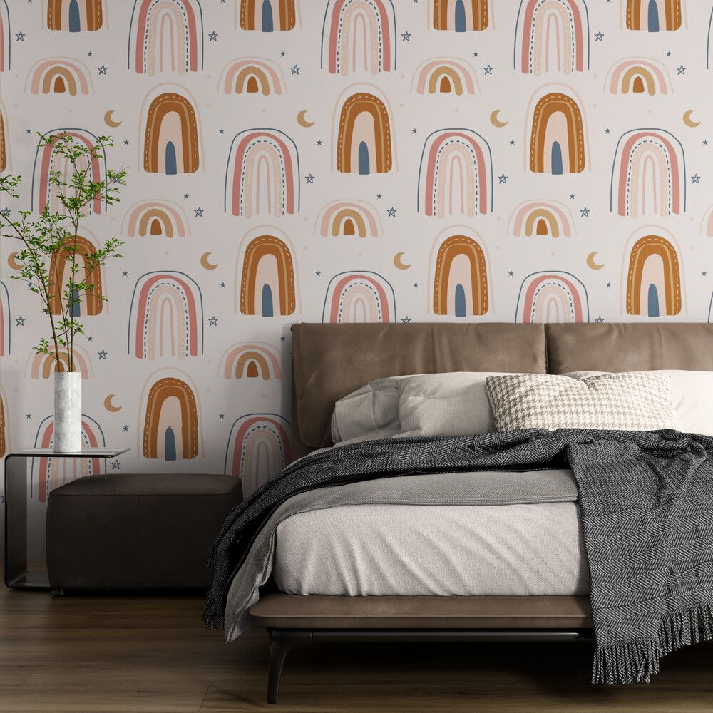 Découvrez le charme intemporel du papier peint scandinave terracotta, une véritable invitation à la sérénité et à la fantaisie. Ce motif répétitif de délicats arcs-en-ciel aux teintes douces, parsemé d'étoiles et de lunes, crée une atmosphère bohème et apaisante, idéale pour une chambre d'enfant ou un espace de détente. Inspiré par le style scandinave, ce design minimaliste et enfantin apporte une touche de magie et de douceur à votre intérieur.