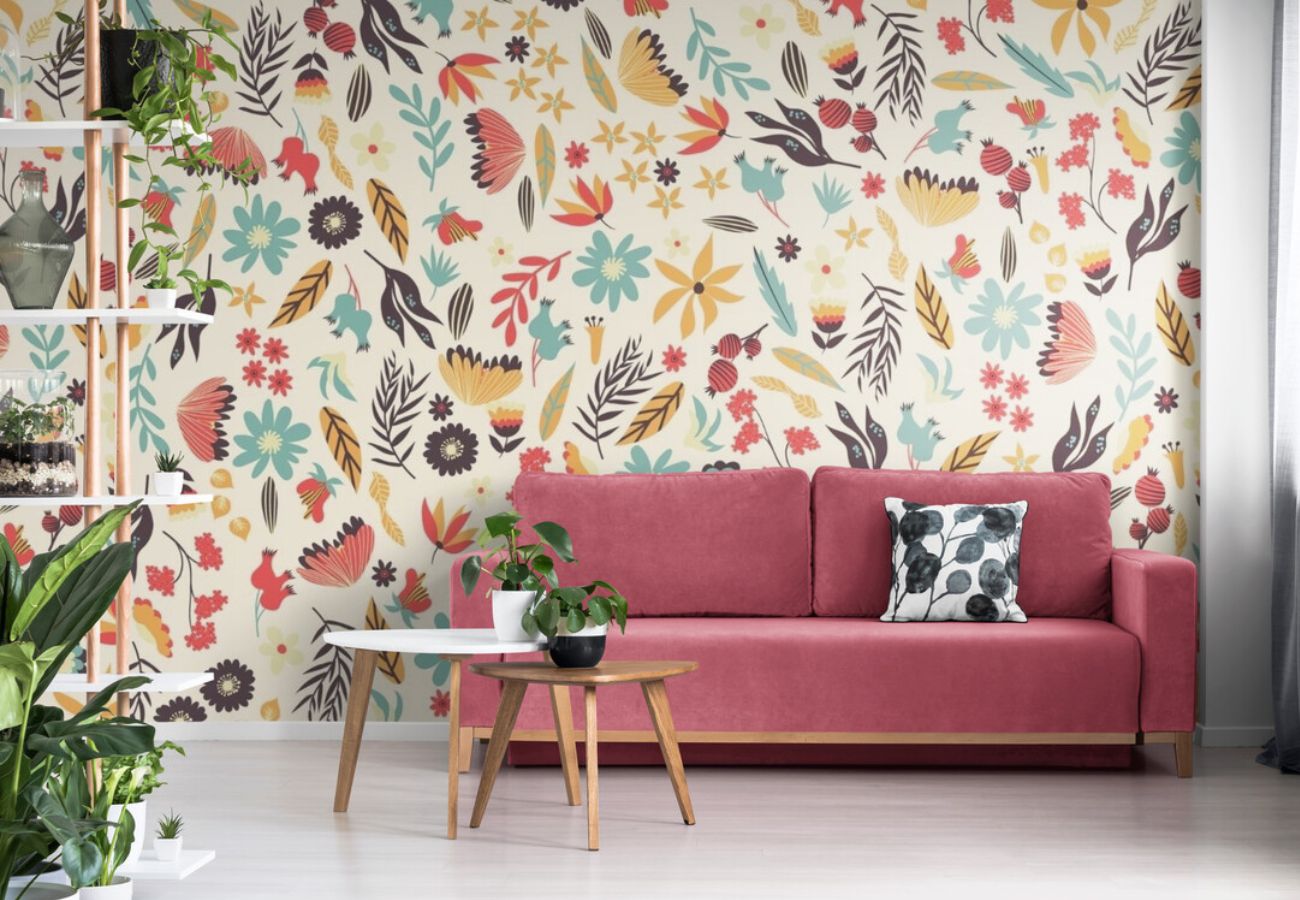 Papier peint style bohème en fleurs