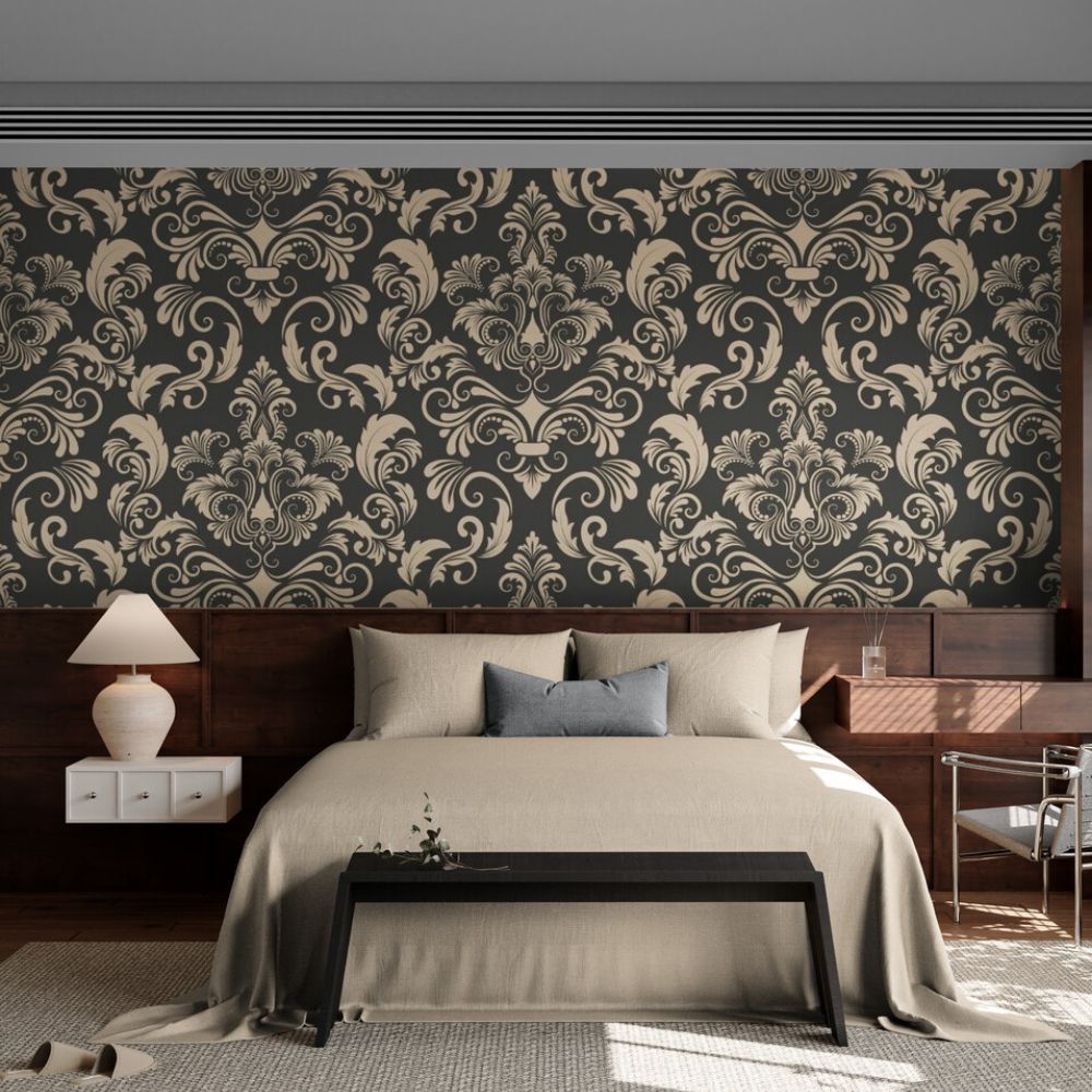Transformez votre chambre en un écrin de luxe et de raffinement avec notre papier peint tête de lit baroque, un chef-d'œuvre de motifs damassés classiques. Ce papier peint, véritable hymne à l'élégance intemporelle, s'orne de volutes délicates et de fleurs épanouies dans des teintes crème sur un fond gris anthracite profond, évoquant la richesse et la sophistication des palais royaux. Inspiré par l'opulence baroque, ce design sublime, avec ses motifs floraux et ses courbes sinueuses, apporte une touche de majesté à votre espace de vie.