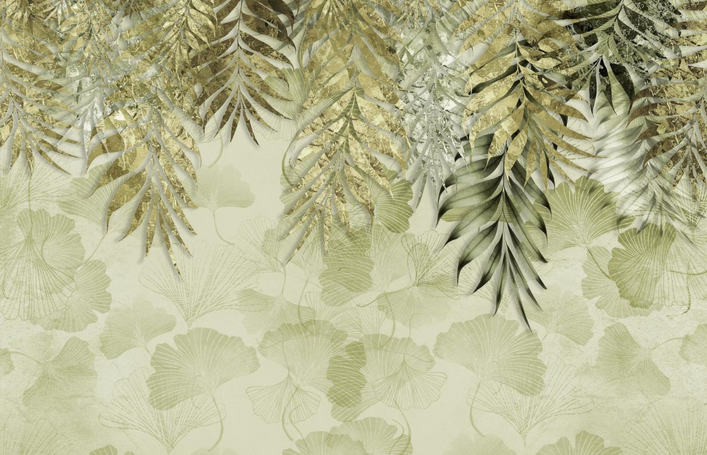 Découvrez le charme intemporel du papier peint tête de lit nature, une véritable invitation à la sérénité et à l'élégance dans votre espace intérieur. Ce motif botanique luxueux, orné de feuilles de palmier et de ginkgo dorées et argentées, crée une ambiance sophistiquée et raffinée, idéale pour transformer une simple chambre en un sanctuaire de tranquillité. Le fond vert pâle, subtilement teinté, évoque la fraîcheur d'une jungle tropicale tout en apportant une touche de modernité grâce à son style Art Déco revisité.