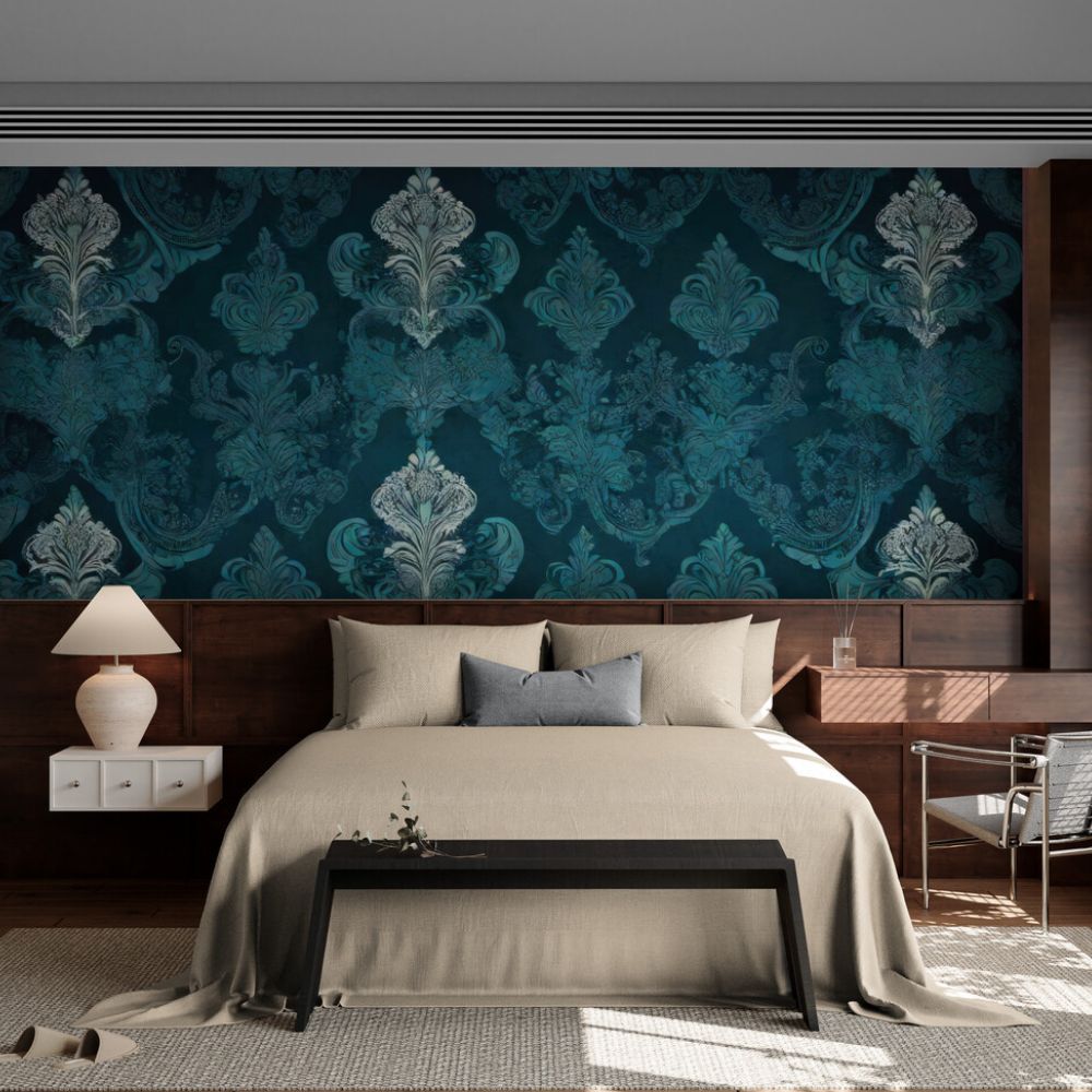 Le Papier Peint Bleu Canard Vintage pour un baroque raffiné