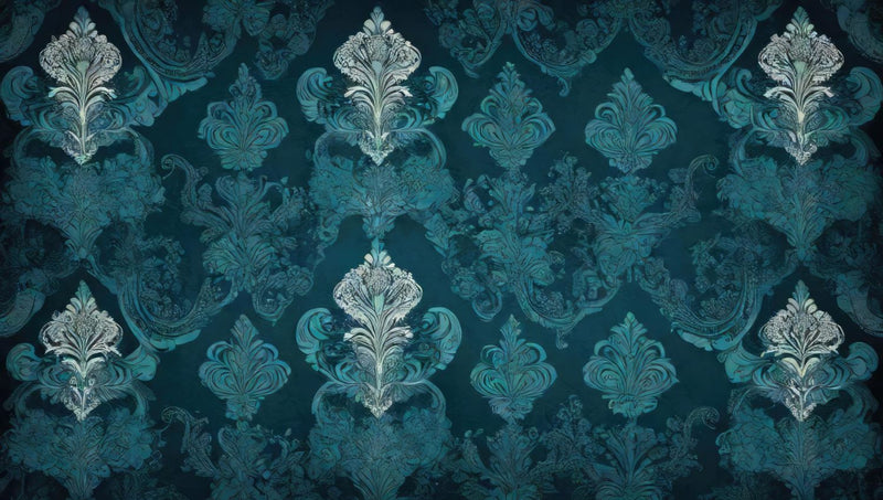 Immergez-vous dans l'élégance intemporelle du papier peint vintage bleu canard, un véritable hommage au style baroque français classique. Ce motif, avec ses formes florales délicates et ses volutes gracieuses, se pare de tons de bleu canard et de blanc argenté, créant une atmosphère luxueuse et raffinée. Sur un fond sombre, ces éléments s'harmonisent pour évoquer la beauté des peintures anciennes, apportant une touche artistique et sophistiquée à votre espace.