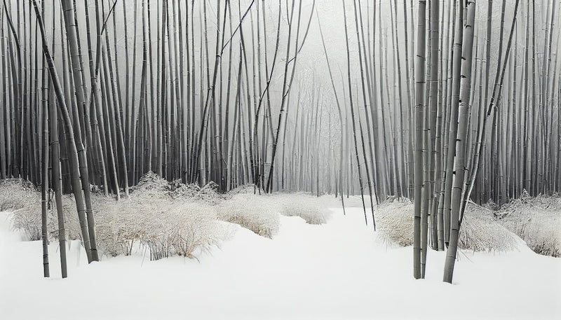 Immergez-vous dans la tranquillité d'une forêt de bambous enneigée avec ce papier peint vintage forêt de bambou grise, où les formes verticales élancées et la palette de gris et de blanc évoquent le minimalisme japonais. Ce motif, inspiré du style artistique zen, apporte une ambiance paisible et contemplative, idéale pour créer une atmosphère de calme et de pureté dans vos espaces intérieurs. Ce papier peint, avec ses teintes apaisantes et ses lignes épurées, est parfait pour transformer une chambre en un sanctuaire de sérénité, un café en un havre de paix ou un coworking en un espace de travail propice à la concentration.