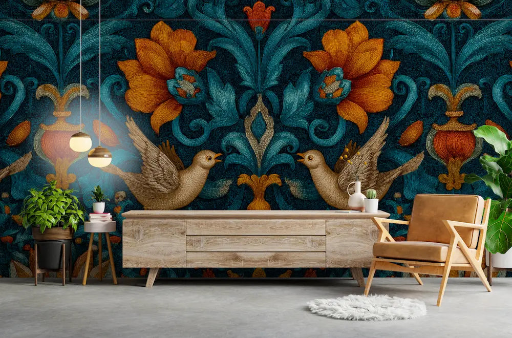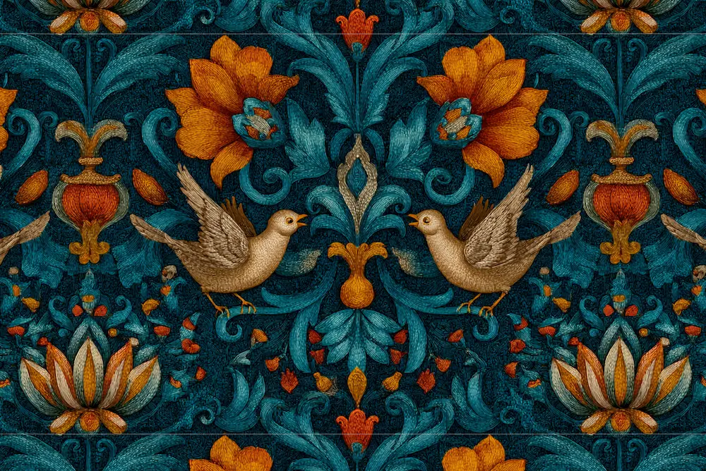 Cette tenture murale médiévale ressuscite la grandeur des châteaux forts dans toute leur majesté féodale, déployant ses motifs héraldiques chargés d'histoire et de noblesse chevaleresque sur vos cloisons comme autant d'étendards de bataille. Cette décoration murale gothique révèle ses trésors d'antan : blasons aux armoiries prestigieuses, scènes de chasse courtoise, entrelacs romans aux géométries sacrées qui murmurent les épopées des preux chevaliers et des gentes dames. Chaque fibre de ce revêtement castral raconte les chroniques des cours médiévales, où honneur chevaleresque et artisanat d'exception s'entrelacent dans une tapisserie historique d'une richesse iconographique saisissante. Les tonalités nobles - pourpres royaux, or héraldique, bleus outremer - créent une atmosphère de grande salle d'apparat qui sublime l'espace avec une prestance aristocratique authentique. Cette tapisserie féodale devient le gardien des traditions séculaires où courage et raffinement se conjuguent en parfaite noblesse ancestrale.